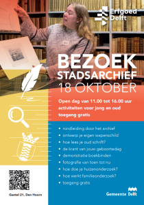 Zaterdag 18 oktober van 11-16 uur opent het Stadsarchief Delft haar deuren voor een open dag. Traditiegetrouw sluiten we aan bij het thema van de Maand van de Geschiedenis. Dat is dit jaar ‘natuurlijk’!